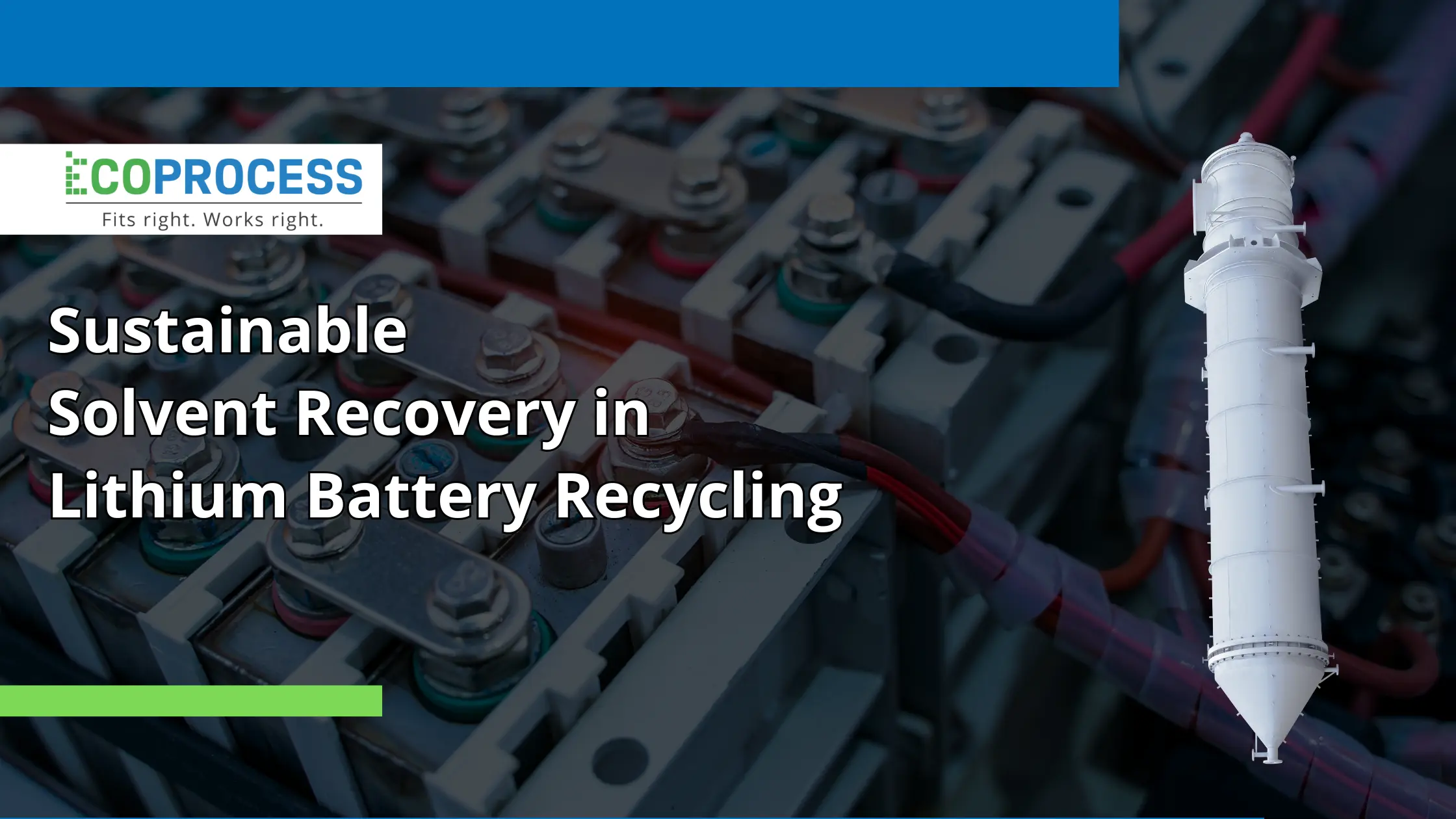 Because of these hurdles, solvent recovery isn’t just nice to have, it’s the lever that can make battery recycling sustainable at scale.